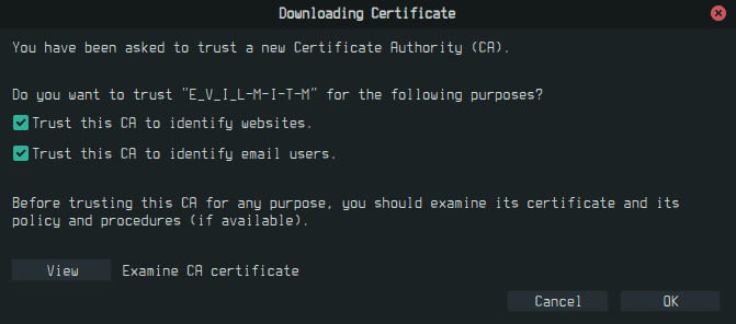 • Jetzt geht man auf View Certificates und danach gibt es einen Import Certificates Button den man auswählt und beide Firefox Abfragen bestätigt.