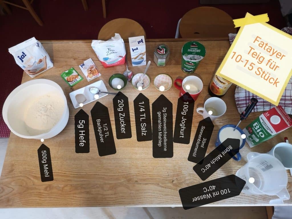 „Fatayer ist sehr bekannt in Syrien und Lebanon und wird zum Frühstuck gegegessen. Meiner Meinung nach gibt es zwei Vorzüge, die Fatayer belieb machen, zusätzlich zum leckeren Geschmack natürlich: