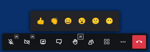 Another feature is the possibility to react live with an emote. To do this, navigate back to the menu bar and select the arrow on the raise hand function. You will then see some new emotes which you can select. If one of these emotes is pressed, this emote will be shown to everyone in the session and will also be played with an audio playback. However, this audio playback can also be very annoying. If you want to deactivate it, you have to go to the settings. To do this, go back to the menu bar, on the three points, then settings and select sounds and uncheck Interactions.
