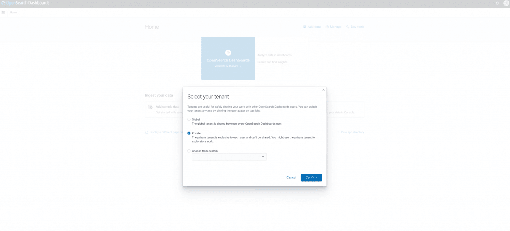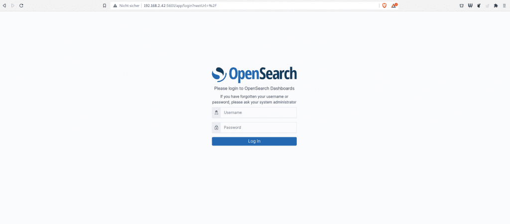 Im Standard wird OpenSearch und OpenSearch Dashboards bereits mit Zertifikaten und einer Absicherung ausgerollt. Der Standard-Benutzer ist „admin“ und auch das Passwort lautet „admin“. Bitte denkt daran das es sich um selbst signierte Zertifikate handelt! Dies ist bei allen Anbindungen zu beachten (ssl.verification_mode: none).