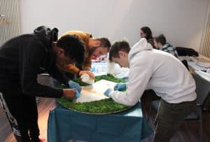 Gerade der Mittwoch und Donnerstag bestand dann viel daraus, das Logo zu vollenden. Wir haben vor allem am Donnerstag die meiste Zeit dafür verwendet, das Moos möglichst genau mit Holzleim zu befestigen. Das Ergebnis dieser Ausbildungsprojektwoche von Yonas, Nik und Saeid seht ihr im Pausen- und Meetingraum Nirvana an der Wand.