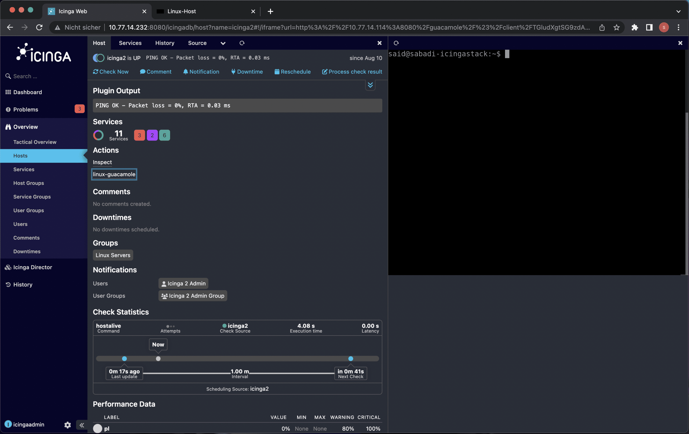 Ich werde nicht auf detaillierte Installationsschritte von Icinga 2 bzw. Icinga Web 2 und Guacamole eingehen, da es hier hauptsächlich um die Implementation von Guacamole in Icinga Web 2 geht.