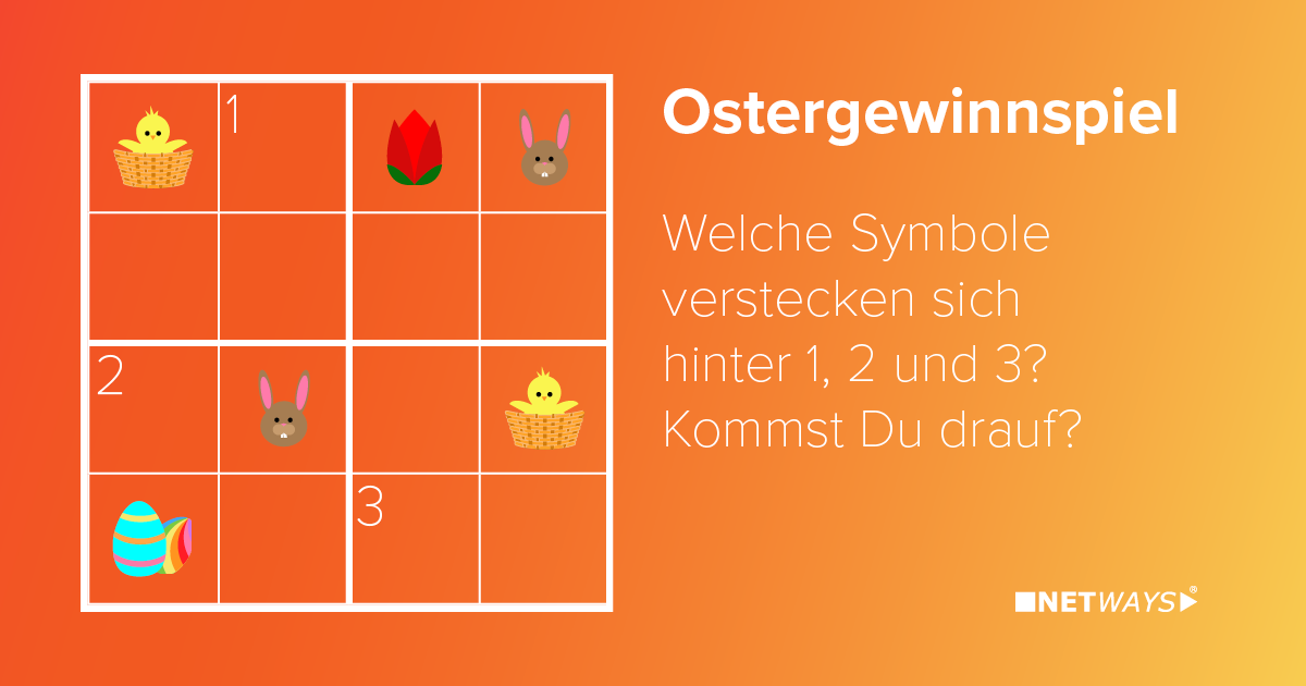 Zu Ostern haben wir dieses Jahr ein Gewinnspiel in Form eines Mini-Sudokus veranstaltet, um unseren Followern eine unterhaltsame und herausfordernde Möglichkeit zu bieten, ein individuelles Osternest zu gewinnen. Pünktlich zu Ostern hat sie der NETWAYS-Osterhase in Nürnberg, Fürth, Metzingen, Passau und Wien verteilt.