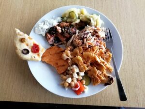 Als Grieche war es für mich eine Selbstverständlichkeit, den Tzatziki zuzubereiten. Das Geheimnis eines hervorragenden Tzatzikis liegt zweifellos im hochwertigen griechischen Joghurt. Daher habe ich mir die Zeit genommen, zu einem authentischen griechischen Großhändler zu fahren, um nur das Beste für meine Kollegen zu besorgen. Das Rezept kommt von akispetretzikis.com