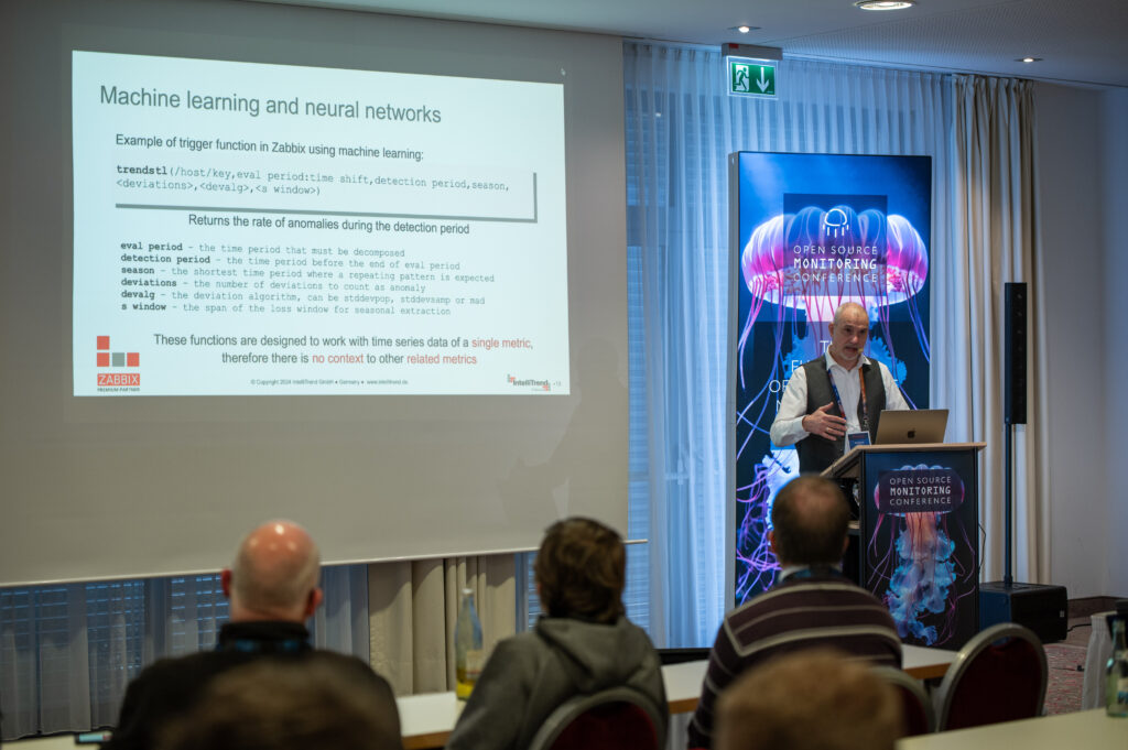 Wolfgang Alper from IntelliTrend discussed how integrating AI and neural networks with Zabbix. He explained that while Zabbix is effective at collecting metrics, defining triggers, and sending alerts, it may miss issues not covered by predefined triggers. By using AI, metrics can be evaluated in a system-specific context to detect anomalies in real-time. The talk covered the differences between AI, machine learning, neural networks, and deep learning, emphasizing the importance of context in data analysis. Wolfgang demonstrated how data from Zabbix can be enriched, normalized, and analyzed using Machine Learning models to identify and respond to anomalies, improving the overall monitoring process.
