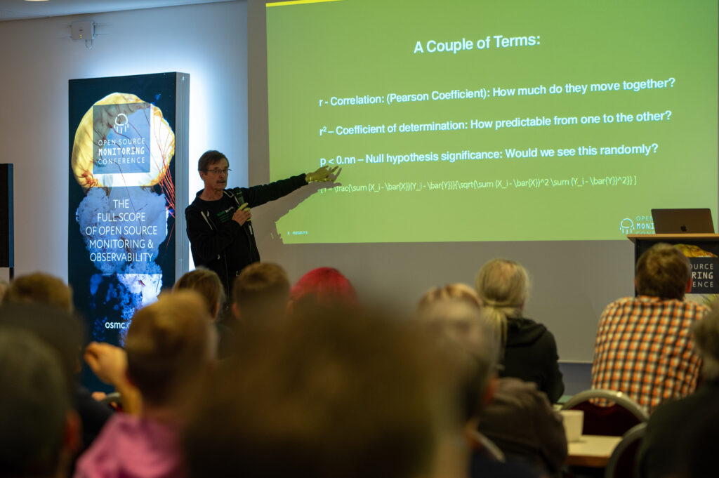 The first Ignite Talk was given by Dave McAllister and was titled „The Conniption Over Correlation„. It explored the fun side of statistics, highlighting the difference between correlation and causation. Dave presented amusing examples such as cats being responsible for wind energy production, Messi’s goals correlating with the French unemployment rate, and the relationship between chocolate consumption and Nobel Prizes.