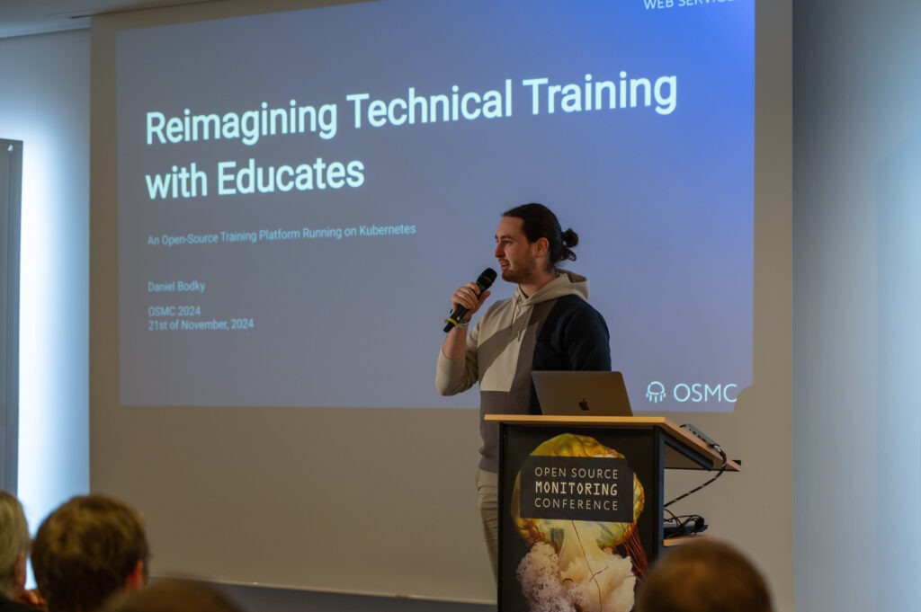 The second Ignite Talk was about „Reimagining Technical Training with Educates“ by Daniel Bodky. He introduced Educates, an open-source platform for creating interactive training environments on Kubernetes.