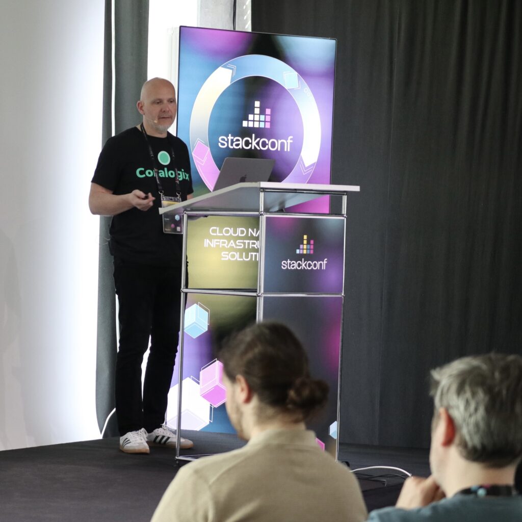 After a small breakfast at the event, it was time for the first talk: “2025: I Don’t Know K8S and at This Point, I’m Too Afraid To Ask” by Alexandru Dejanu. I was quite excited for this one, as my main reason for attending stackconf this year is to begin my journey into cloud-native infrastructure. Starting with Kubernetes today can feel intimidating—many people already seem very experienced with it, and it can be scary to ask about the basics.
